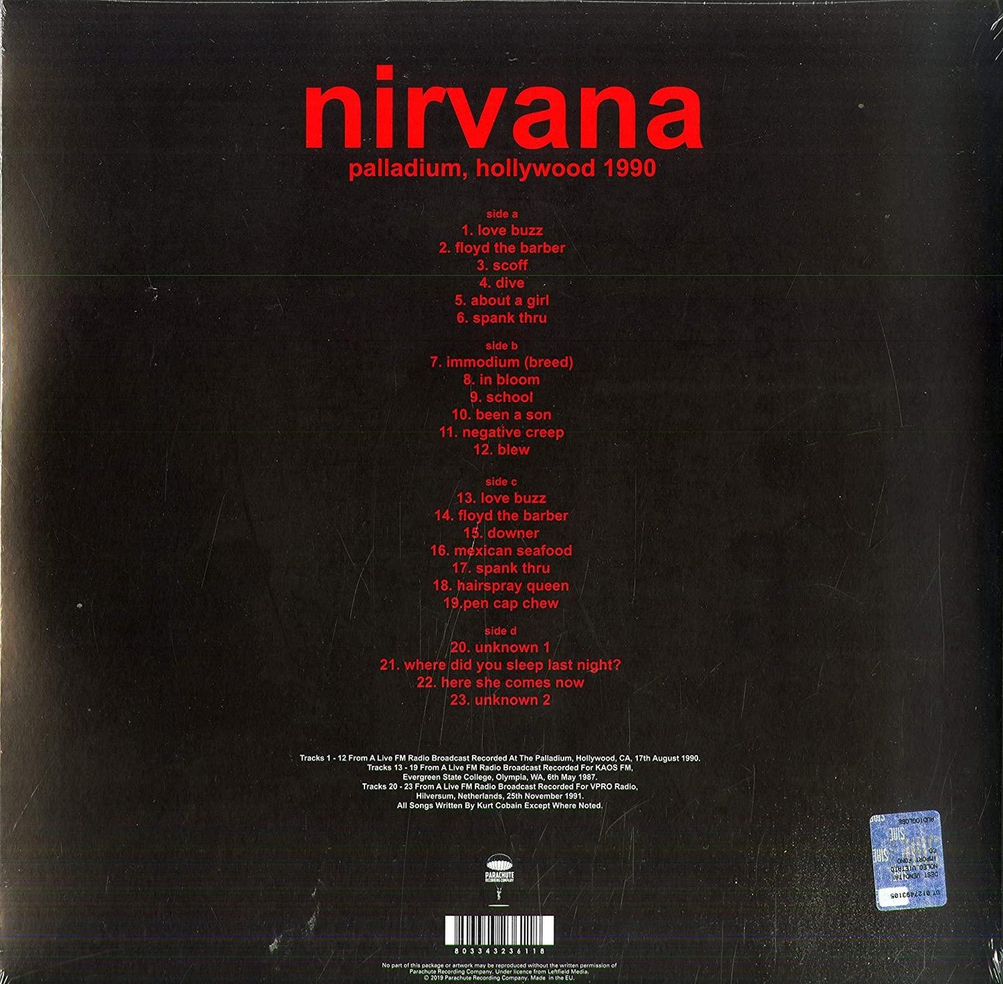 Presented on DOUBLE-LP are unique radio broadcast live recordings of a 1990 Nirvana concert featuring Dale Crover (Melvins) on drums. Also including bonus tracks from radio sessions, the LP's are pressed onto Redish/Pink colored vinyl. Read note on color below for more info.