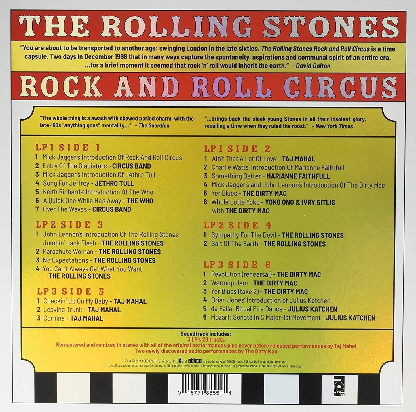 The Rolling Stones - Rock and Roll Circus documents a December 1968 show, originally intended for broadcast on British television, that featured clowns, acrobats, tigers, a fire-eater, the Rolling Stones and a menagerie of musician friends that included the Who, Eric Clapton, John Lennon and Yoko Ono. The show never aired. The Stones, unhappy with their performance, shelved it. A clip of the Who performing "A Quick One While He's Away" made it into the documentary "The Kids Are Alright," but the rest of the show remained on the shelf until the 1996 release of a laser disc, video, and this soundtrack.
